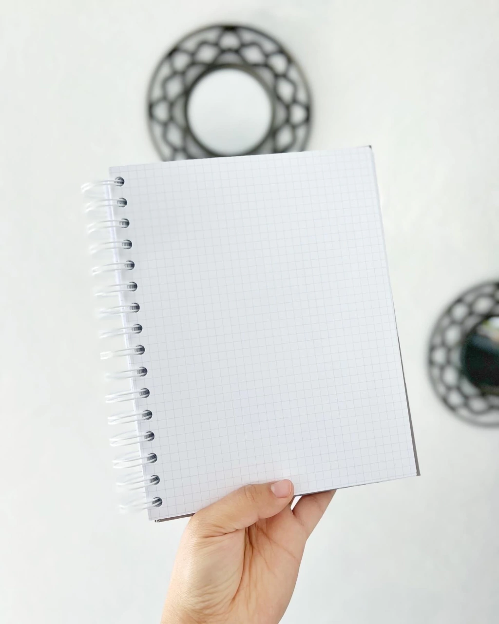 Cuaderno medio oficio hecho con papel de alto gramaje.